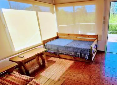 Cuenta con 2 habitaciones, 1 matrimonial y una segunda habitación con 4 camas de 1 plaza. Además cuenta con un living amplio con sillones contemporáneos de estilo colonial y una cocina amplia totalmente equipada. En el living se encuentra un Diván Cama y una marinera carrito. Además de baño y ante baño que dan una mejor privacidad. Cuenta con cocheras para 2 vehículos donde el 50% del mismo esta bajo techo y el resto bajo una lona anti granizo que permite retraerse cuando el tiempo acompaña para mejorar la vista. Internet y DIRECTV no faltan para brindar el mejor servicio y confort en tu estadía. En ésta cabaña la vista es única!!!