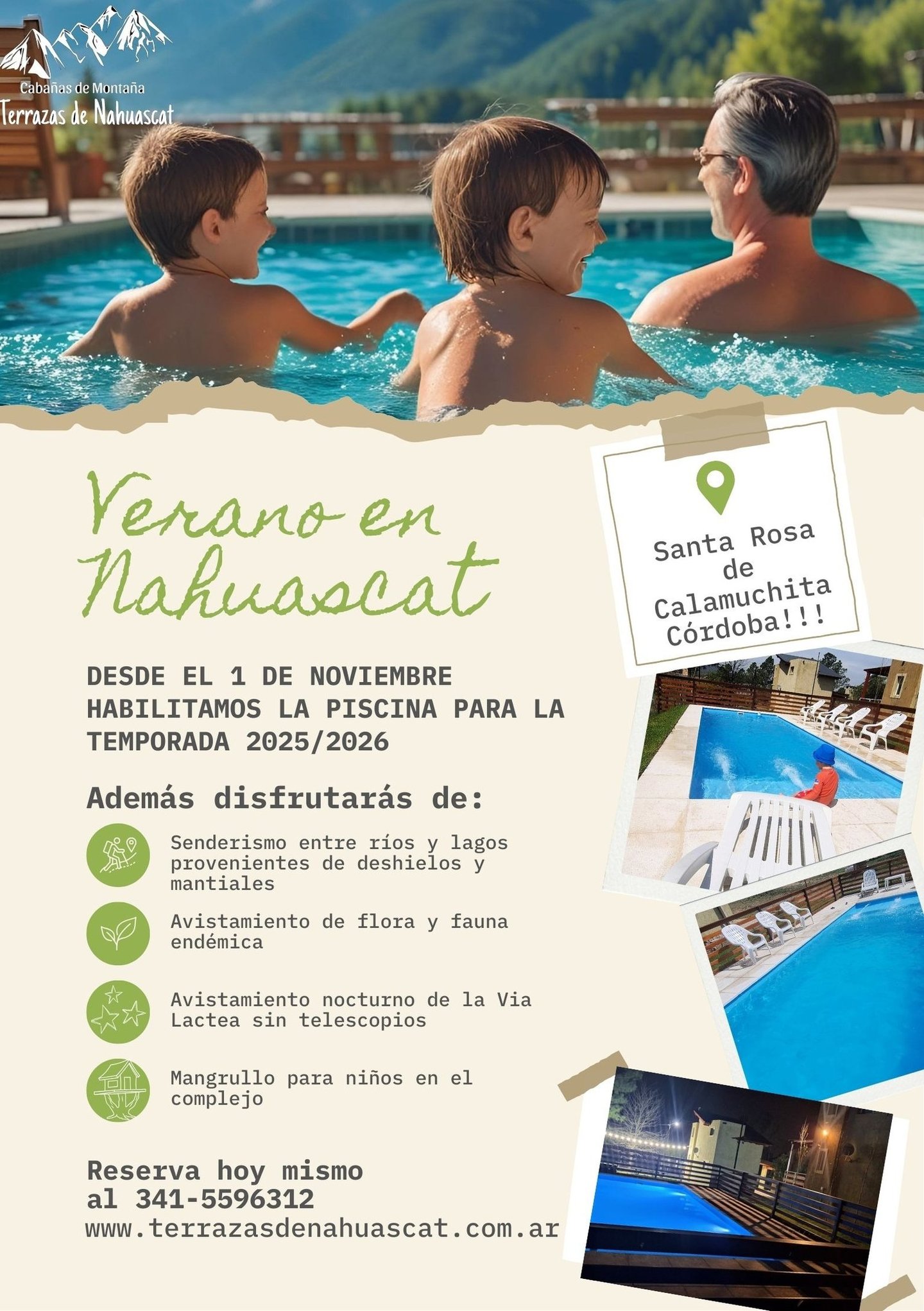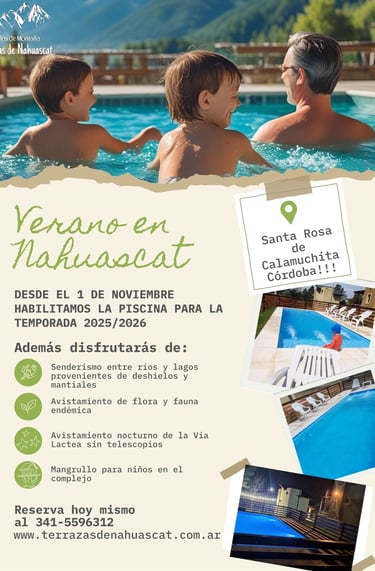 Terrazas de Nahuascat es el destino perfecto para disfrutar de la primavera en todo su esplendor. Con sus paisajes exuberantes y un clima agradable, este lugar se convierte en un refugio ideal para aquellos que buscan relajarse y conectar con la naturaleza. Las flores brotan en una explosión de colores, creando un ambiente vibrante que invita a pasear y explorar. Además, ofrecemos vistas panorámicas que cautivan a los visitantes, permitiendo momentos de reflexión y contemplación. Es un lugar donde se pueden realizar actividades al aire libre, a solo 150mts del Río, desde caminatas hasta picnics, mientras se disfruta de la brisa suave y el canto de los pájaros que realzan el paisaje.